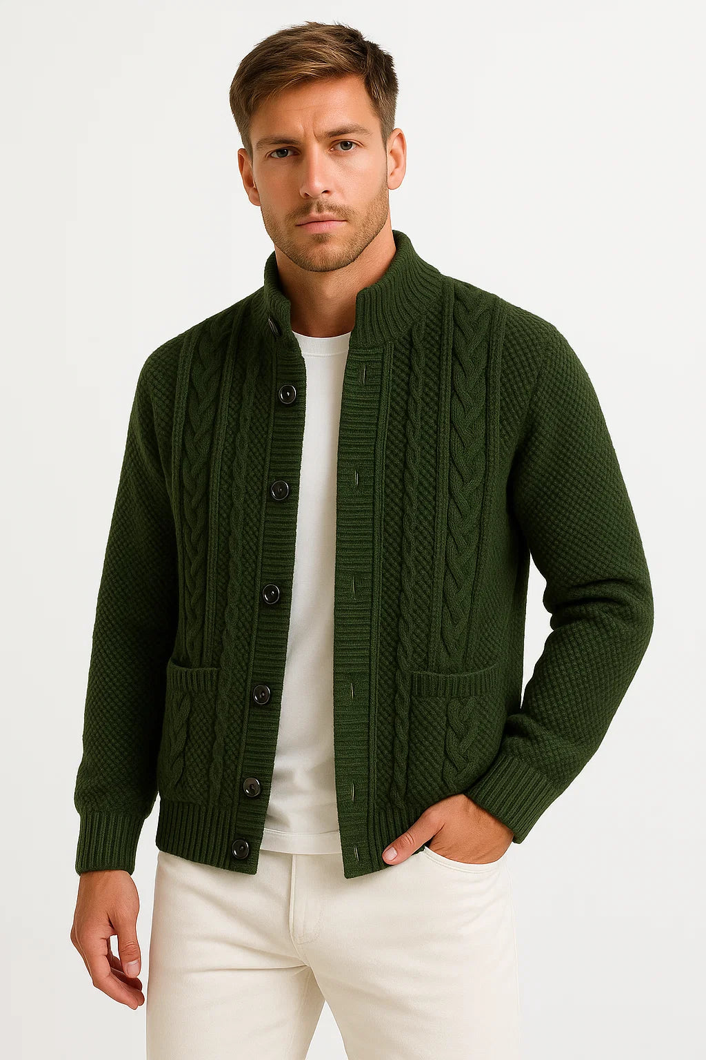 Men's Cardigan Wool Knit Buttoned Casual Comfortable Fit