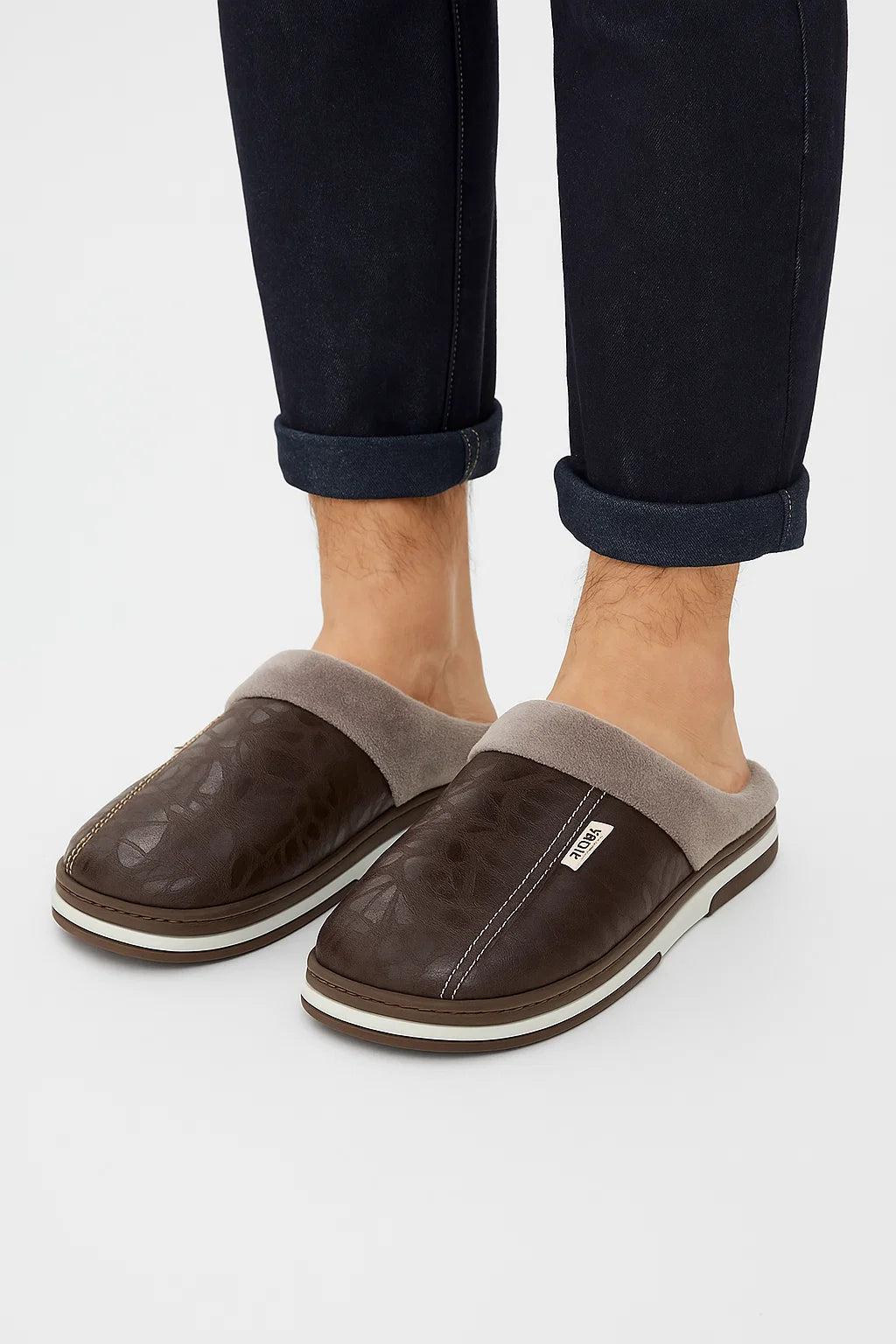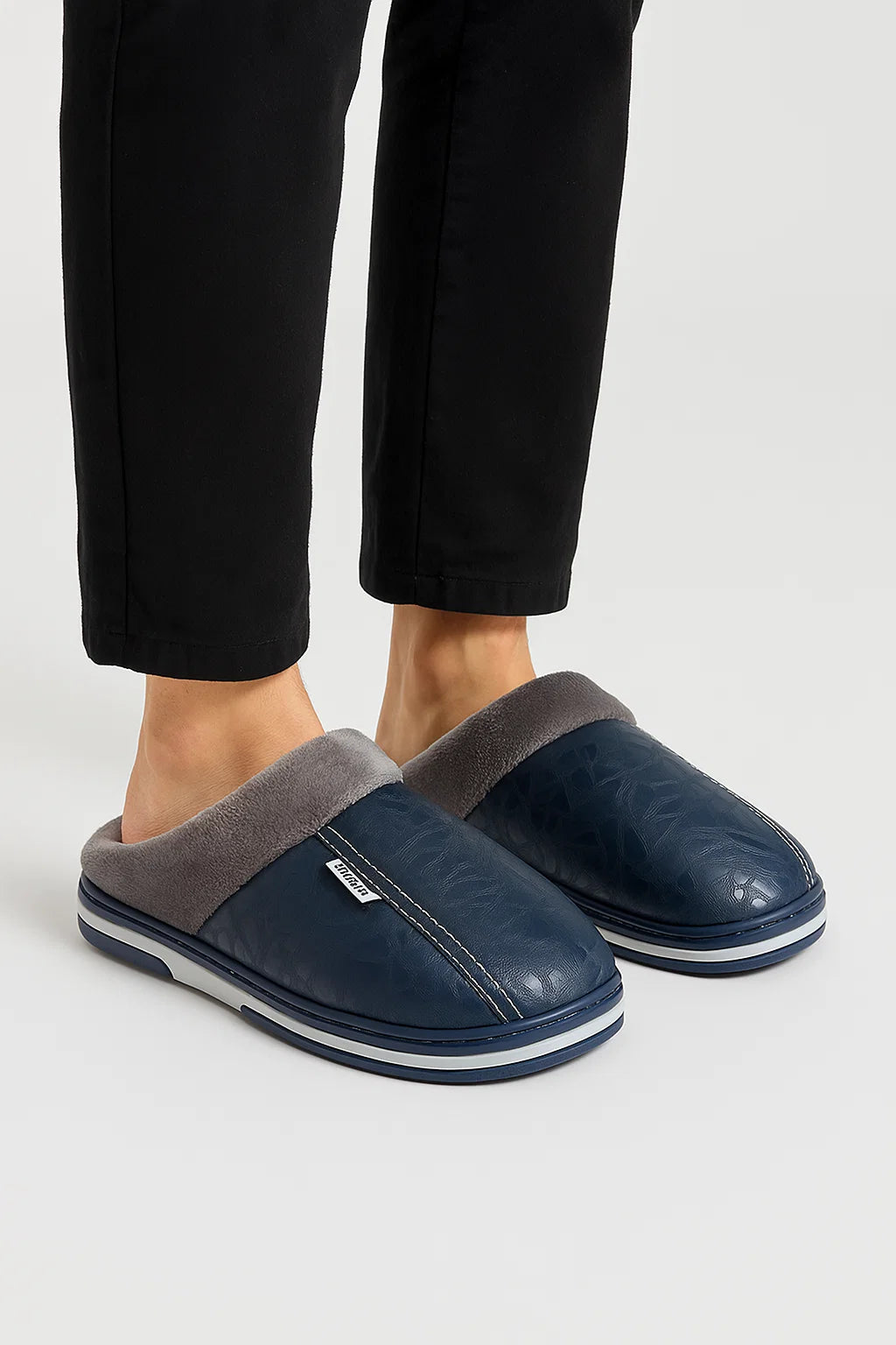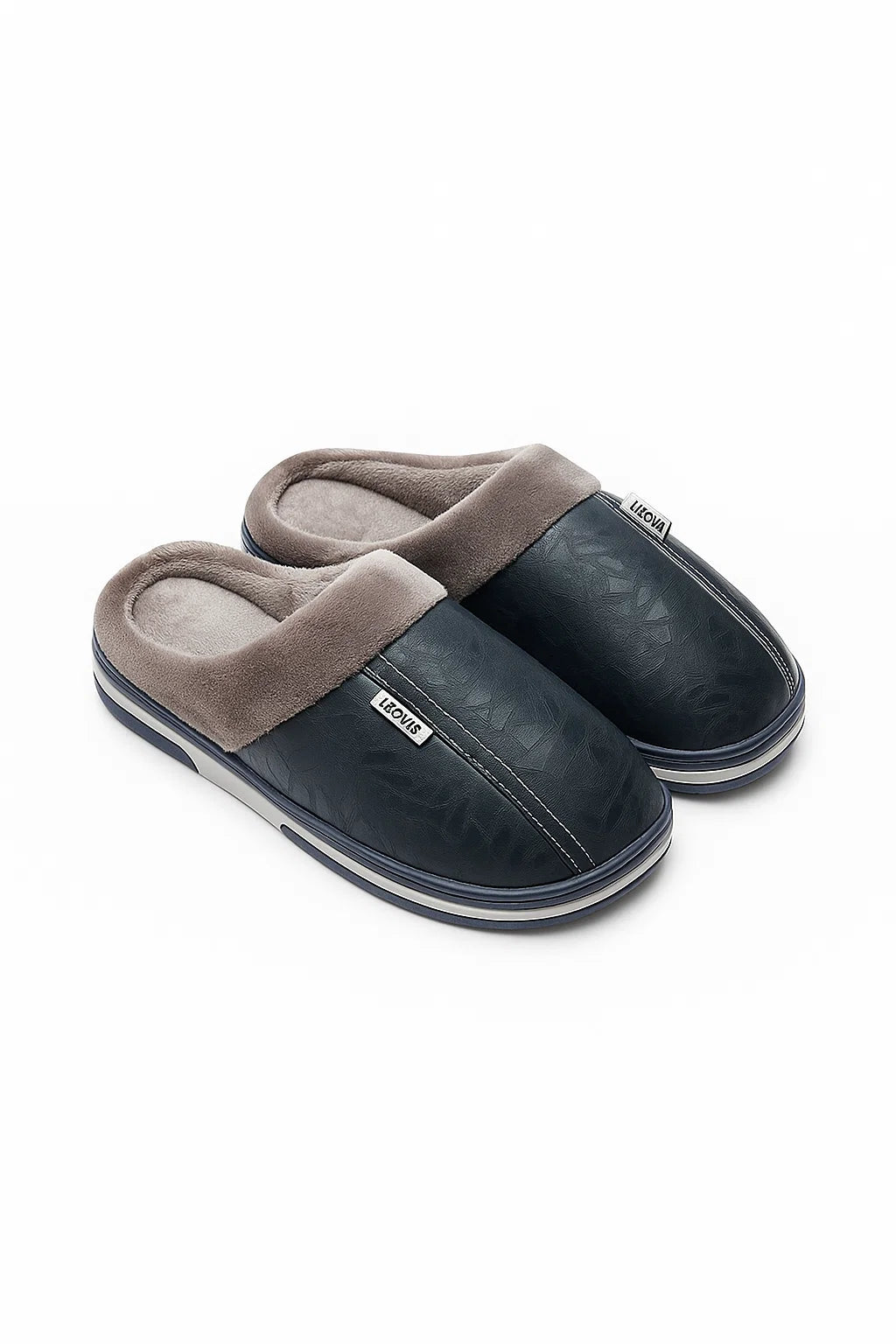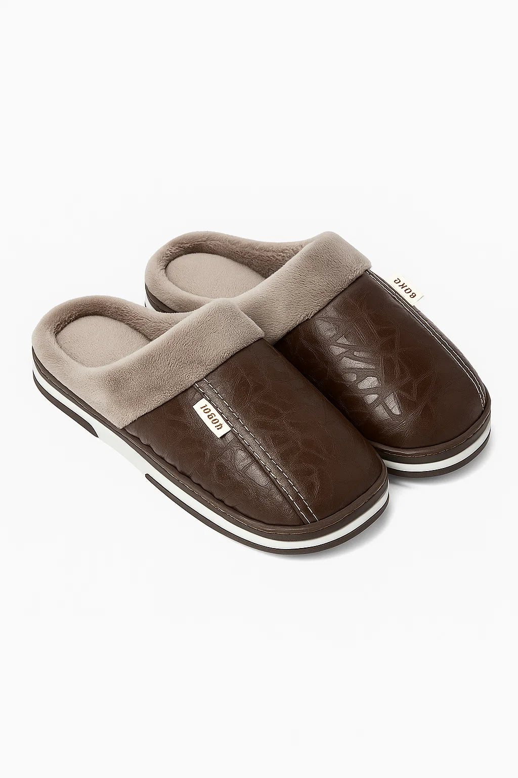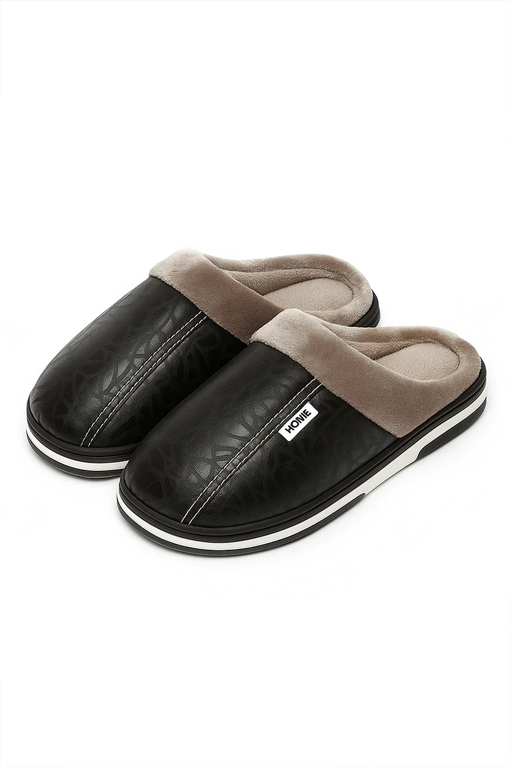 Men's Slippers PU Leather Waterproof Indoor Fur Casual Winter Shoes
