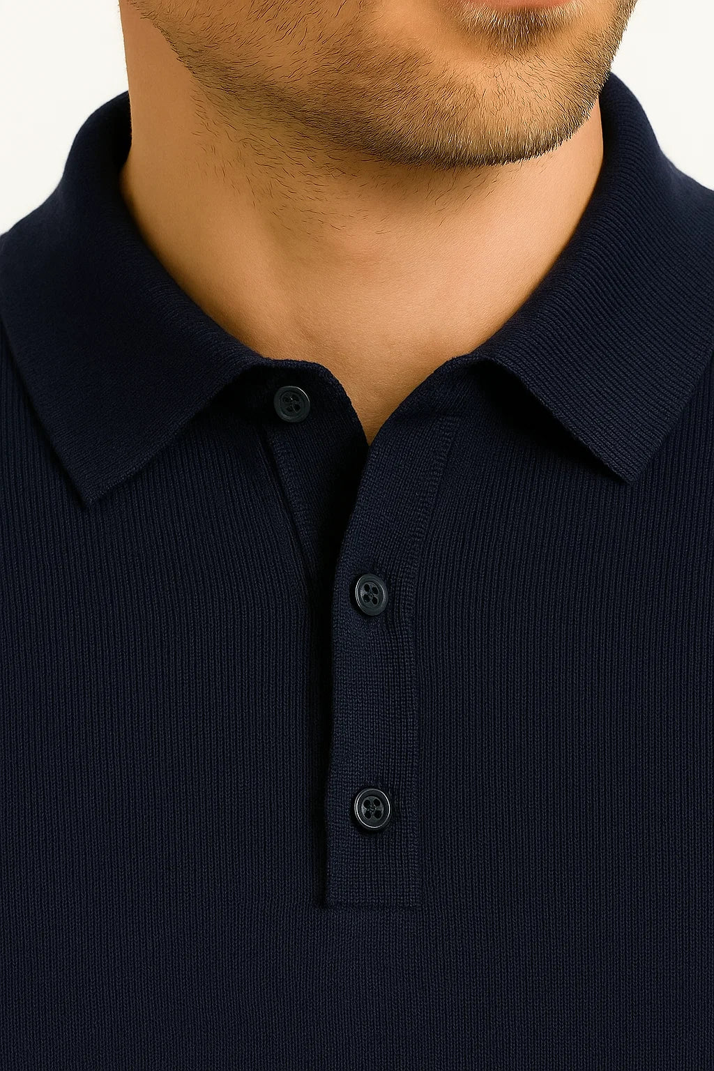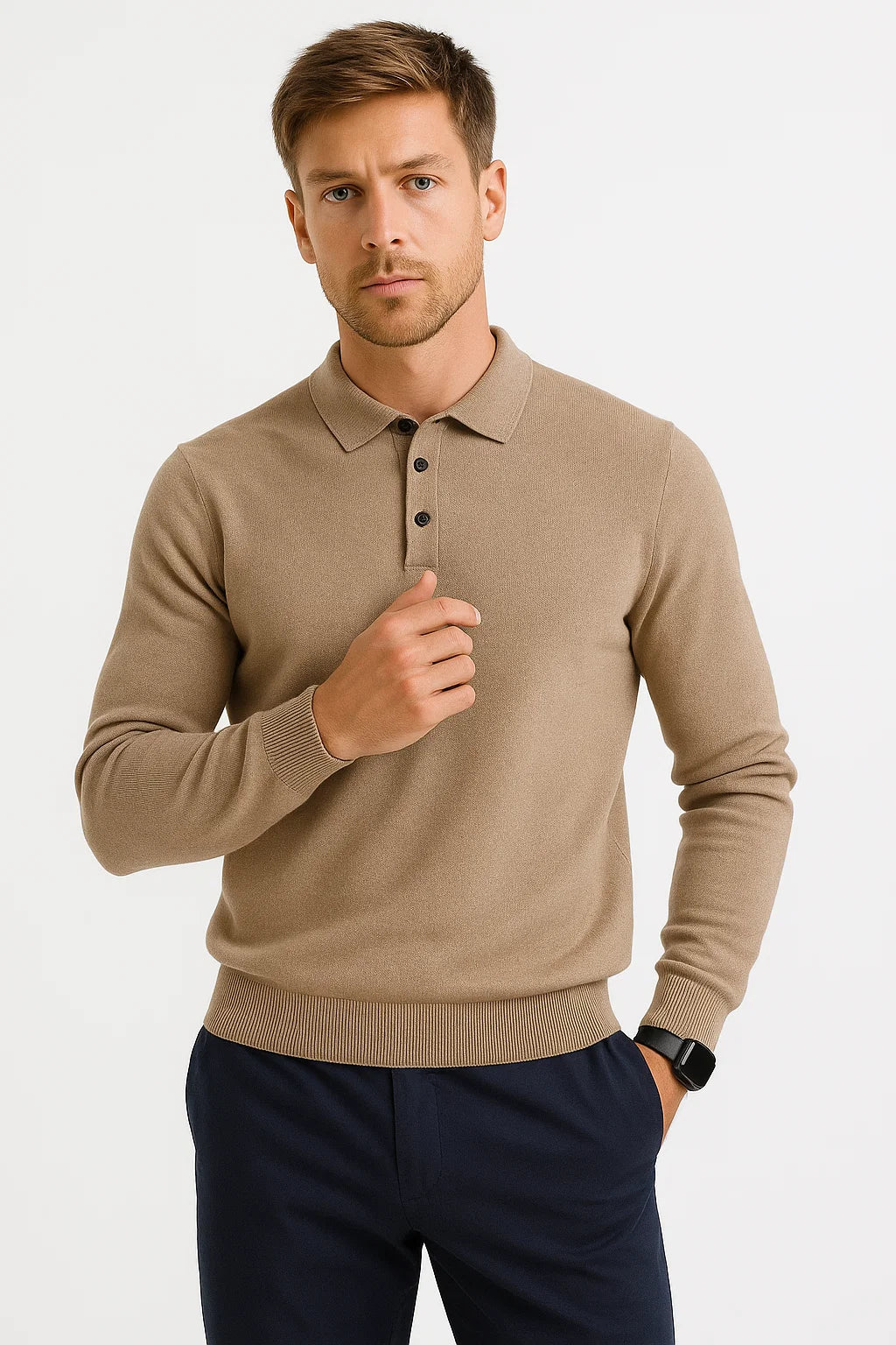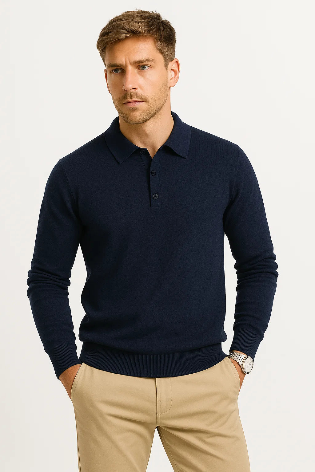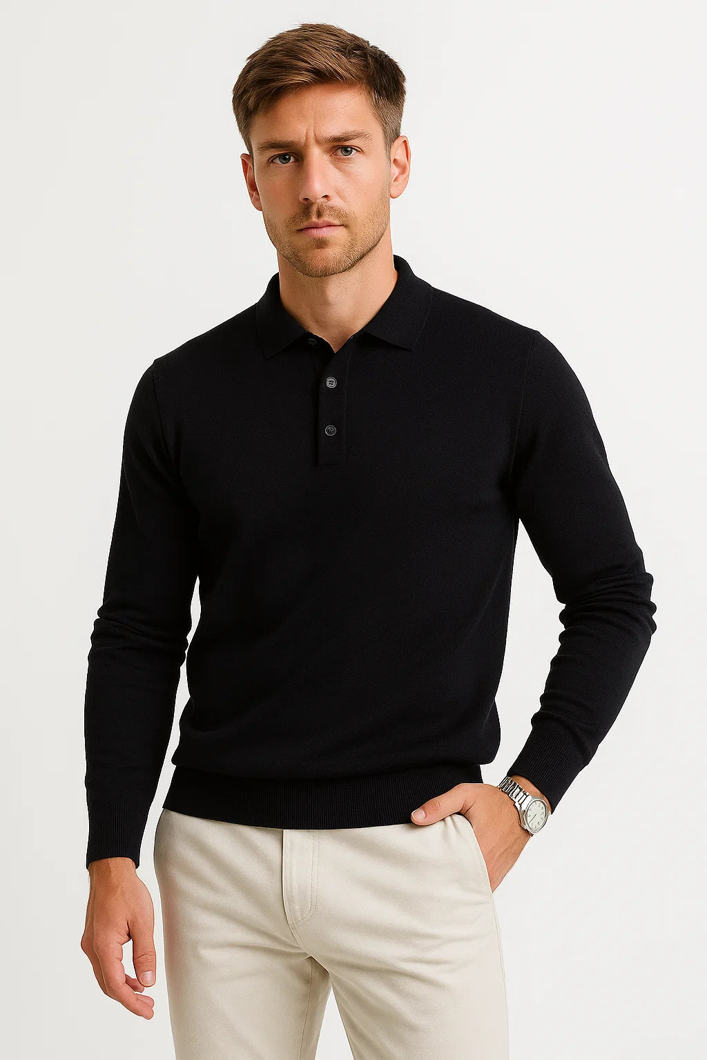 Men's Polo Sweater Merino Wool Long Sleeve Classic Knit