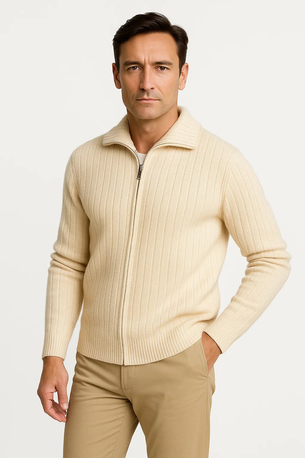 Men's Zip Up Cardigan Merino Wool Stand-Up Collar Zipper Coat