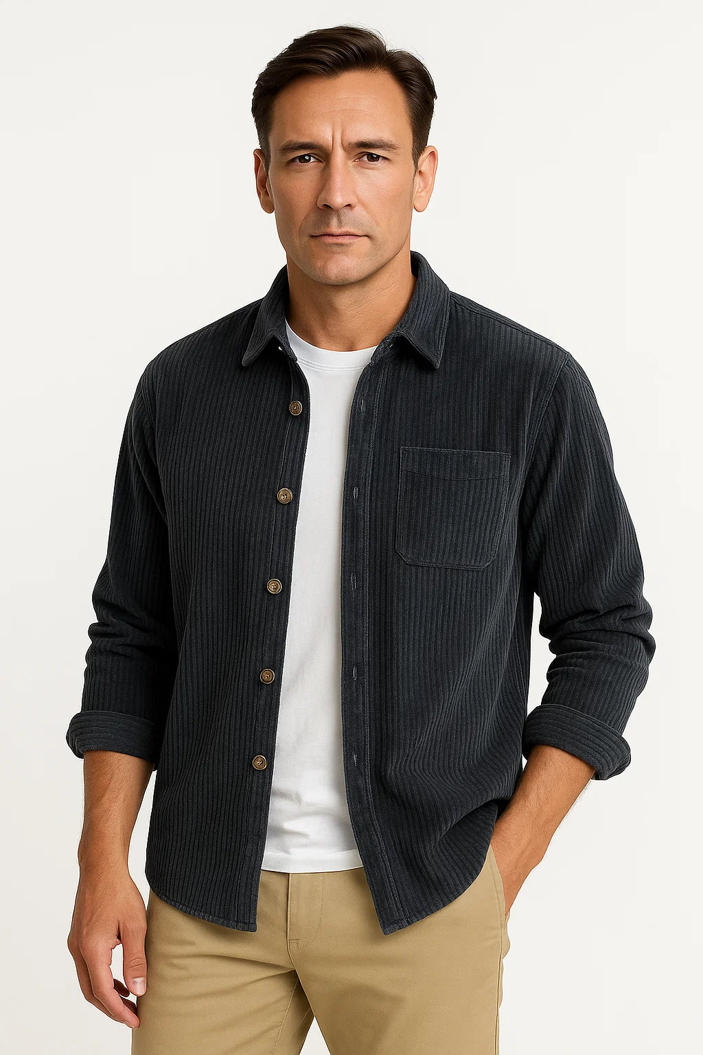 Men's Overshirt Jacket Corduroy Relaxed Fit Button-Up