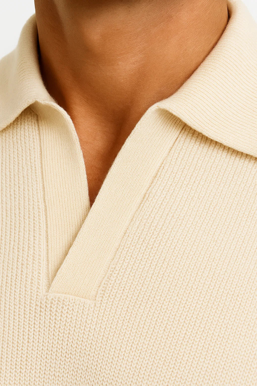 Men's Polo Shirt Midweight Cotton V-Neck Textured